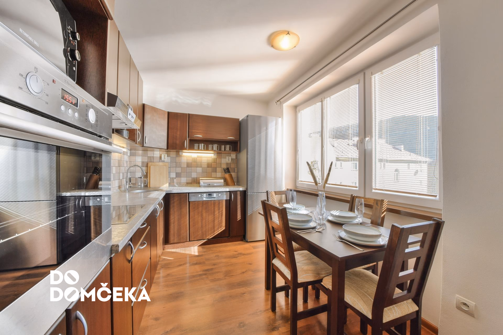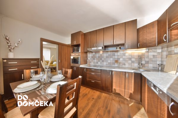 Nehnuteľnosť disponuje vstavaným nábytkom z masívu, zariadením a všetkým potrebným vybavením. V rámci kuchyne je to kuchynská linka a elektrospotrebiče t.j. chladnička s mrazničkou, umývačka riadu, el. rúra, varná doska a mikrovlnná rúra. Súčasťou vybavenia kuchyne je aj všetok potrebný riad, príbory, poháre a ďalšie kuchynské vybavenie. Kuchyňa disponuje aj jedálenským kútom.