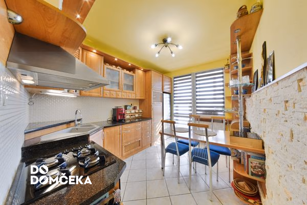 Kuchyňa je zariadená kuchynskou linkou s elektrickou rúrou, plynovou varnou doskou a digestorom. V kúpeľni sa nachádza vaňa, umývadlo s odkladacím priestorom a sprchový kút. Nehnuteľnosť sa ponúka so vstavaným nábytkom. Viac informácií o zariadení, ktoré je súčasťou predaja vám poskytneme v realitnej kancelárii.